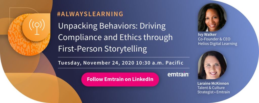 LINKEDIN LIVE BROADCAST: Unpacking Behaviors: Driving Compliance and Ethics through First Person Storytelling November 24, 2020February 21, 2021 Share this: Click to share on X (Opens in new window) X Click to share on Facebook (Opens in new window) Facebook Like Loading... Related