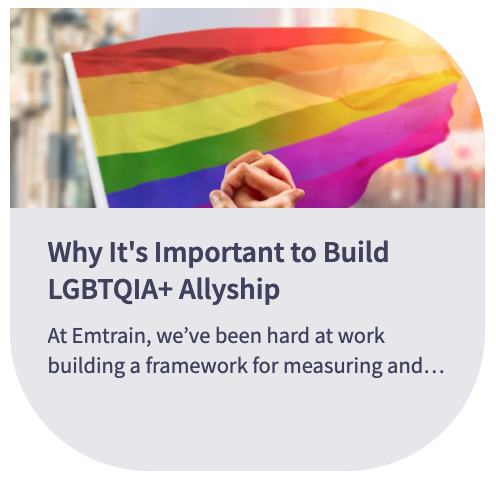 Blogpost: Why It’s Important to Build LGBTQIA+ Allyship June 17, 2021August 18, 2021 LINK: https://emtrain.com/blog/workplace-culture/lgbtqia-allyship/ Share this: Click to share on X (Opens in new window) X Click to share on Facebook (Opens in new window) Facebook Like Loading... Related