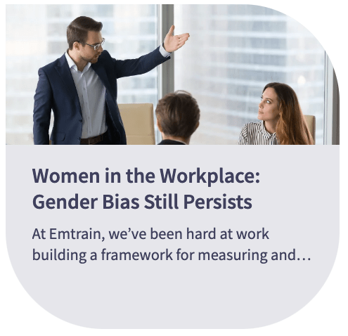 Blogpost: Women in the Workplace: Gender Bias Still Persists June 24, 2021August 18, 2021 LINK: https://emtrain.com/blog/unconscious-bias/women-gender-bias/ Share this: Click to share on X (Opens in new window) X Click to share on Facebook (Opens in new window) Facebook Like Loading... Related